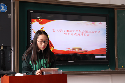会议开始,首先由张少涛老师进行讲话,张老师对18届新成员表示了欢迎与祝贺以及对前一届学生会干部工作能力的肯定。他指出未来要靠新一届的学员。新学员应认真秉持学生会宗旨:服务同学,锻炼自我。其次团总支副书记周亚首先针对上个学期工作作出总结,同时感谢同学们在学期工作中做出的努力,感谢同学们踊跃参加文化节,感谢各个部及各个成员的艰苦努力。随后学生会主席石尚维对本学期学生会工作作出安排并对接下的两个活动进行总汇。最后由艺术学院副院长谢云中老师为会议作出总结并表示希望同学们要做到在奉献与牺牲的同时不忘自身专业知识的学习。