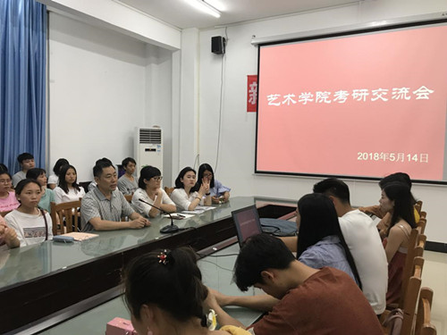 为提高我院大学生的知识水平,增强我院大学生就业方面的认识,鼓励同学们积极考研,提升思想文化水平和专业水平。2018年5月14日晚八点,在我院美术楼会议室举行了考研交流、动员大会。参加会议的有我院党委书记崔德虎、分管学生工作副院长谢云中、指导学生的各专业的老师们以及各年级的同学们。