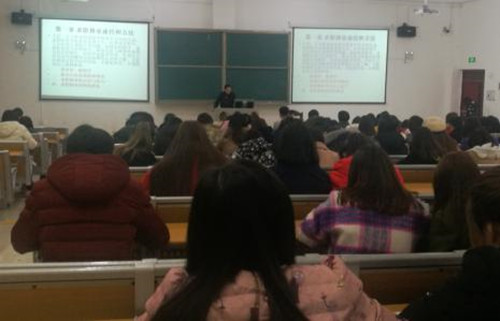 讲座中,学生们很认真的听讲,谢教授为学生介绍了就业信息服务网站,如贵州人事考试网、163等等。谢教授主要围绕求职择业途径和方法、求职面试的方法和技巧、就业途径三大方面进行讲解。首先在讲解求职择业中,主要强调材料的准备,如就业推荐表、简历、自荐信等等,材料应如何进行编写和制作,谢教授一边在讲解,一边展示简历模板和自荐信的范文给学生观看,让学生深刻的明白在求职中制作好的简历和自荐信是非常的重要。接下来讲解求职面试的方法和技巧,谢教授告诉学生们在面试中要做充足的准备,调节好心态;要有时间观念,提前到面试现场;遇到问题多思考、多观察。最后重点讲解就业的途径,一一讲解了自主创业、公司招聘、应征入伍、国家机关省级考试、事业单位招聘、特岗教师招聘、三支一扶、西部计划。让学生了解到更多的就业途径,在求职中能有更多的选择。