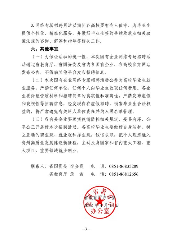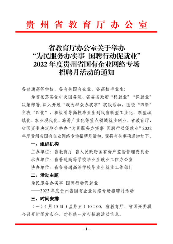 省教育厅办公室关于举办2022年国有企业网络专场招聘月活动的通知