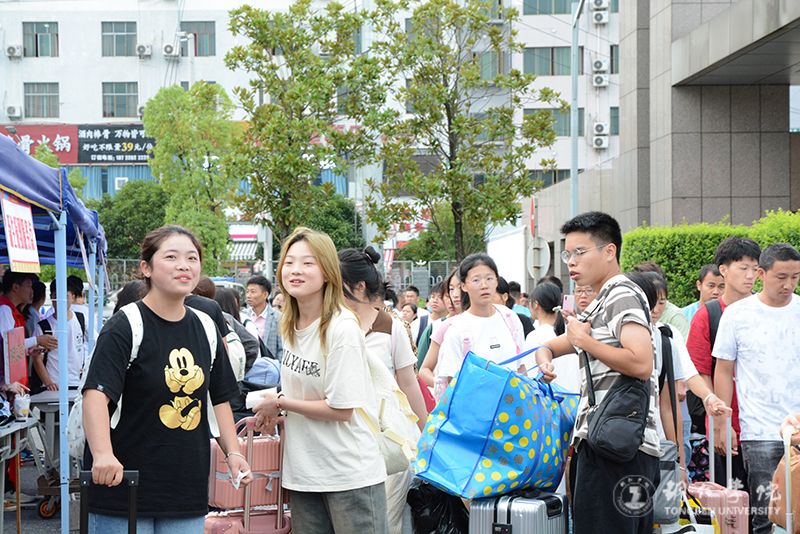 迎新现场,各二级学院、相关职能部的工作人员各司其职,有序为新生办理入学手续。在车站接站点、学校大门内外,从迎新接点到宿舍,随处可见工作人员和志愿者们忙碌的身影。他们或拉着行李,或扛着麻袋,一边为2023级新生答疑解惑,一边引导新生了解适应新环境、熟悉融入新校园。他们以饱满的热情投入到迎新工作中,让新生倍感贴心和温暖。