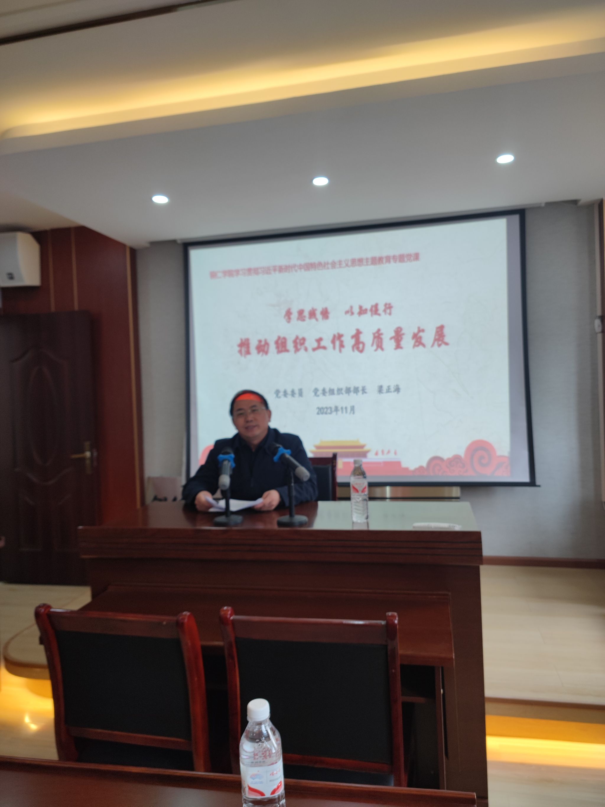 梁正海以《学思践悟 以知促行 推动组织工作高质量发展》为题,围绕“坚持学思践悟,锻造过硬本领”“坚持以知促行,勇于担当作为”“坚持学以致用,推动成果转化”三个方面,为参会的党员同志讲授了一堂生动精彩的党课。