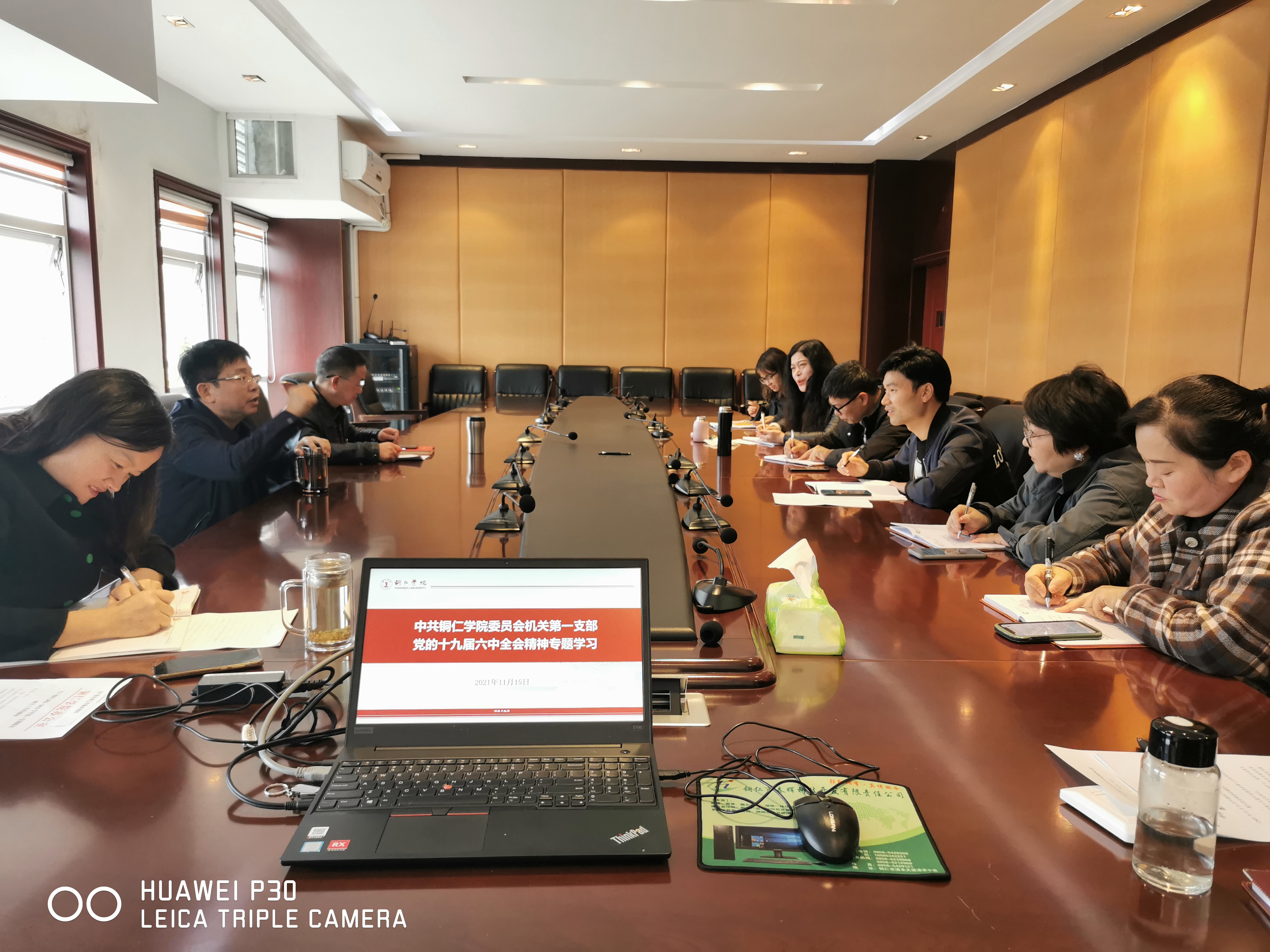 2021年11月15下午,beat365中国唯一官网机关第一党支部在行政楼召开党的十九届六中全会精神专题学习会。会议由支部书记徐秋云主持,全体支部党员参会。