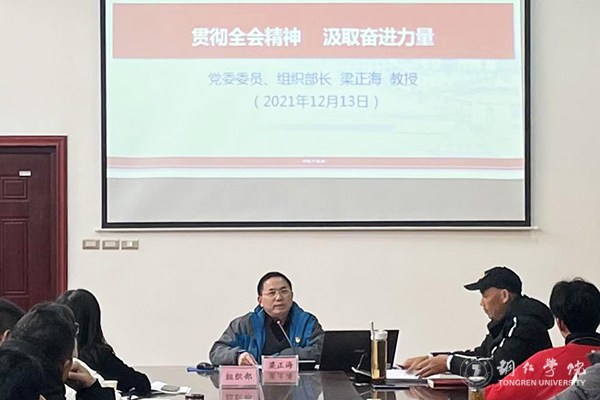 根据学校党史学习教育工作安排,12月13日下午,学校党委委员、组织部部长梁正海到大健康学院,开展党的十九届六中全会精神宣讲。大健康学院党委书记、院长余静主持宣讲会。机关第一党支部全体党员、大健康学院全体教师及学生干部参加了此次宣讲。
