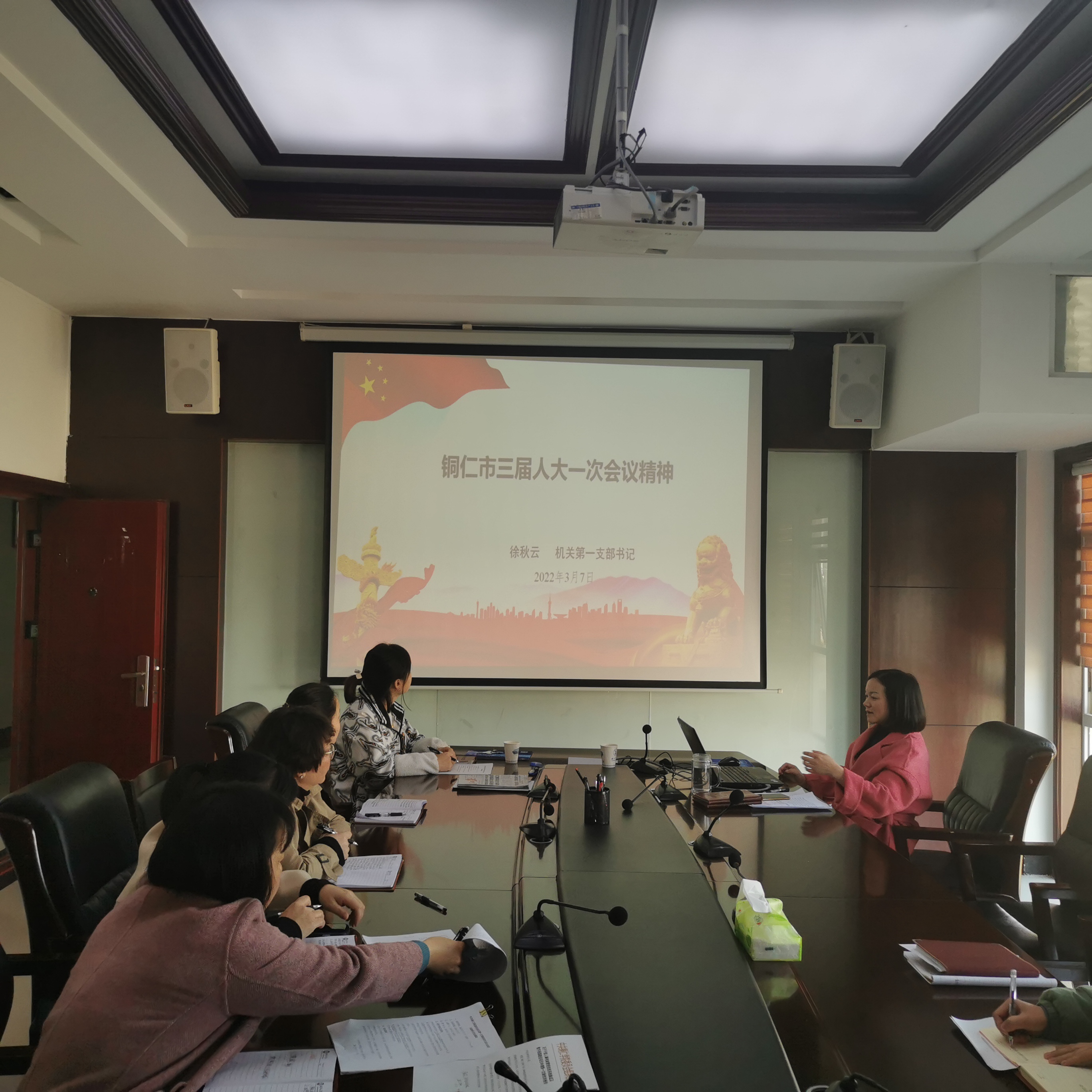 3月7日,beat365中国唯一官网机关第一党支部书记徐秋云同志在行政楼8326会议室宣讲铜仁市三届人大一次会议精神,支部全体党员同志认真聆听了此次宣讲。