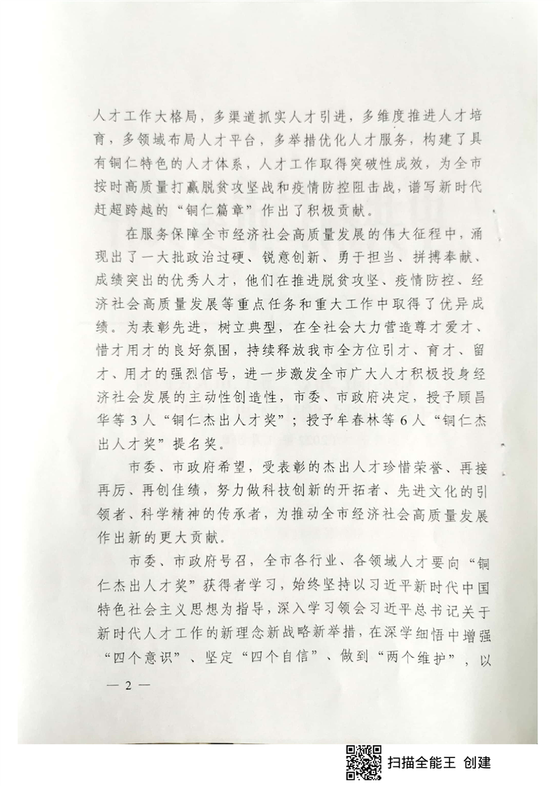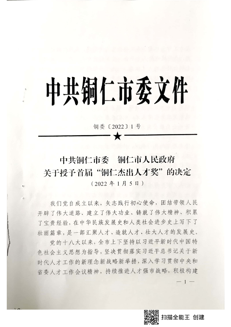 beat365官网常军教授获首届“铜仁杰出人才奖”